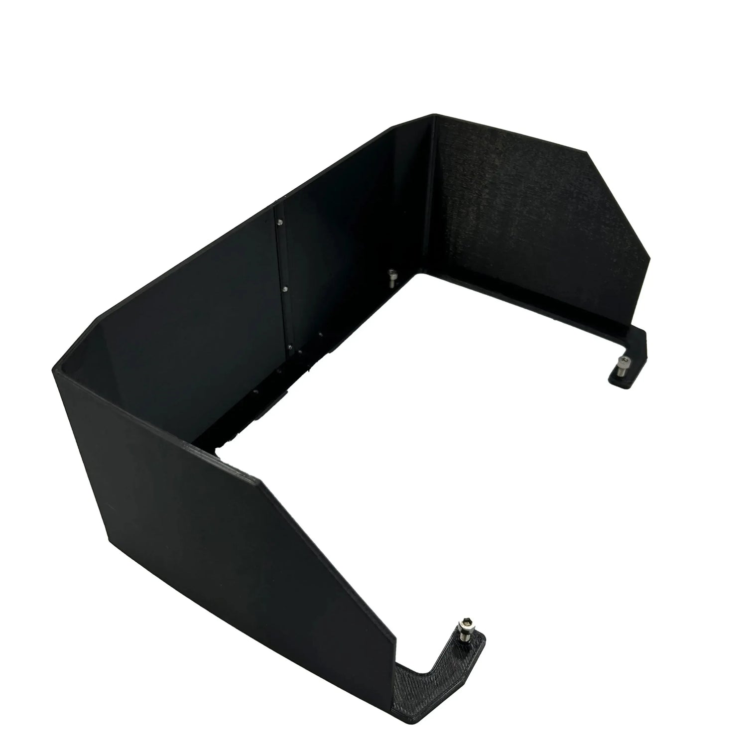 MAS-Production aurinkolippa asennetaan laitteen ”uppoasennus” rei’istä. Poista peitelistat / lista ja kiinnitä ruuvit näytön puolelta aurinkolippaan. Voit halutessasi asettaa peitelistat / listan takaisin paikoilleen. Kiinniketarvikkeet toimitetaan tuotteen mukana. Aurinkosuojan väri on musta.