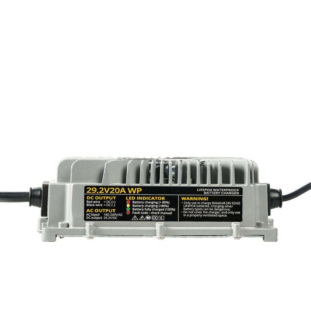 Rebelcell 29,2V 20A vedenpitävä LiFePO4 akkulaturi 24V akuille