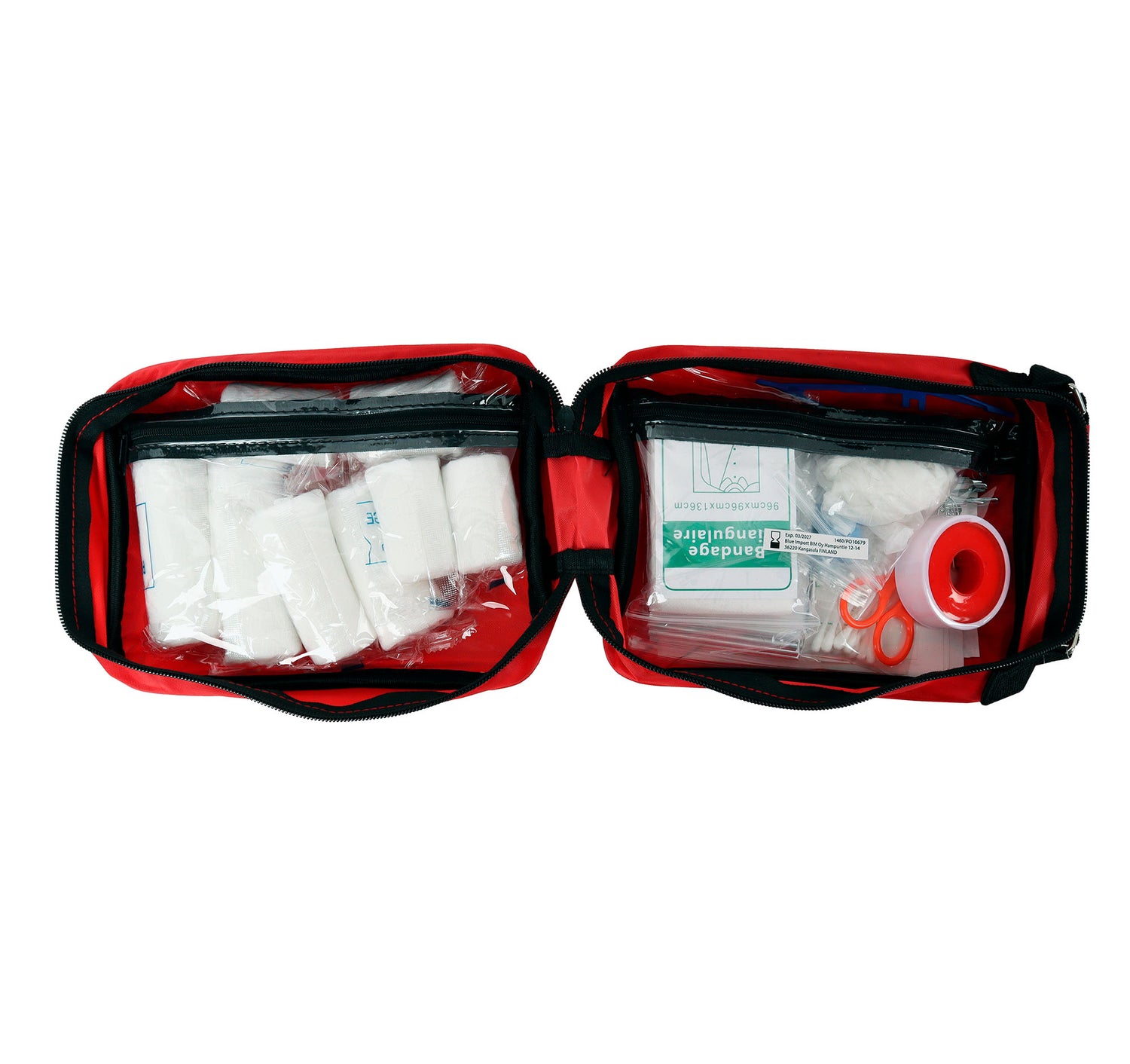 • Sisältää 65 ensiaputarviketta – kattava valikoima hätätilanteisiin