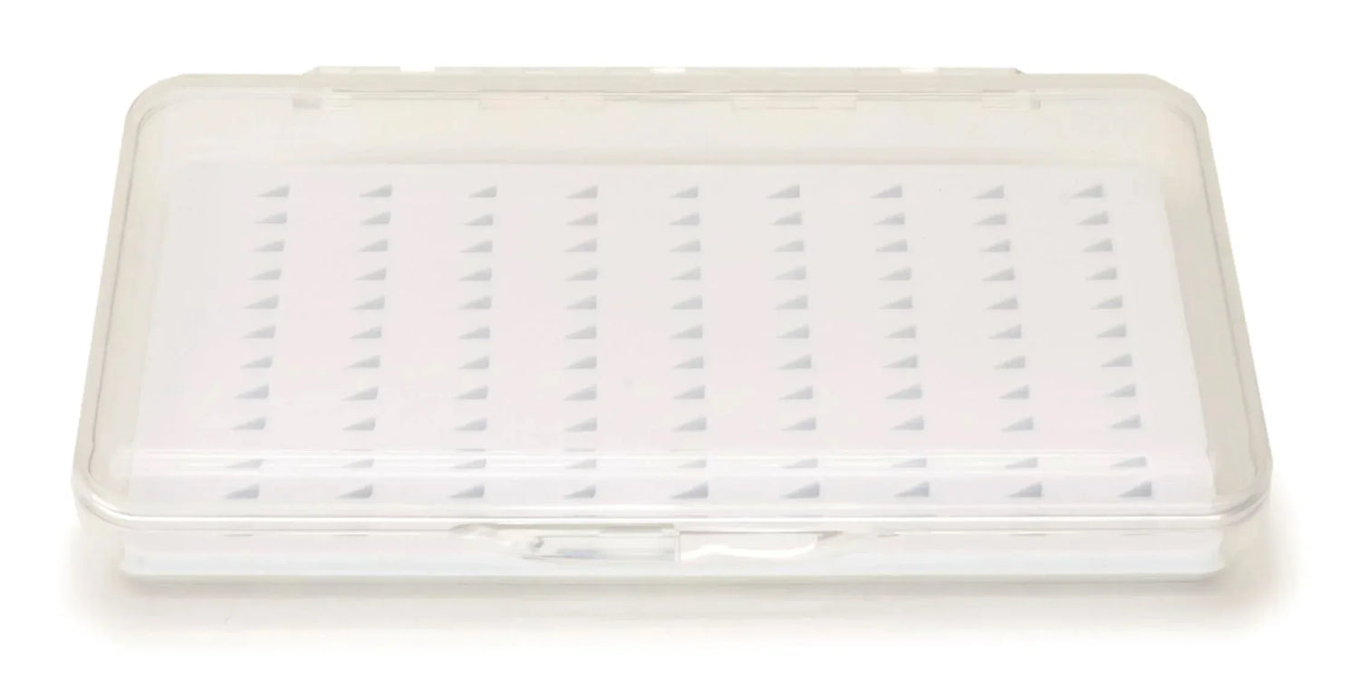 Rasia on koristeltu ainutlaatuisella Fish Camo -kuviolla, ja sen läpinäkyvä kansi helpottaa halutun perhon löytämistä nopeasti. Foam slot -jakajat pitävät perhot tukevasti paikoillaan, mikä tekee käytöstä vaivatonta ja luotettavaa.