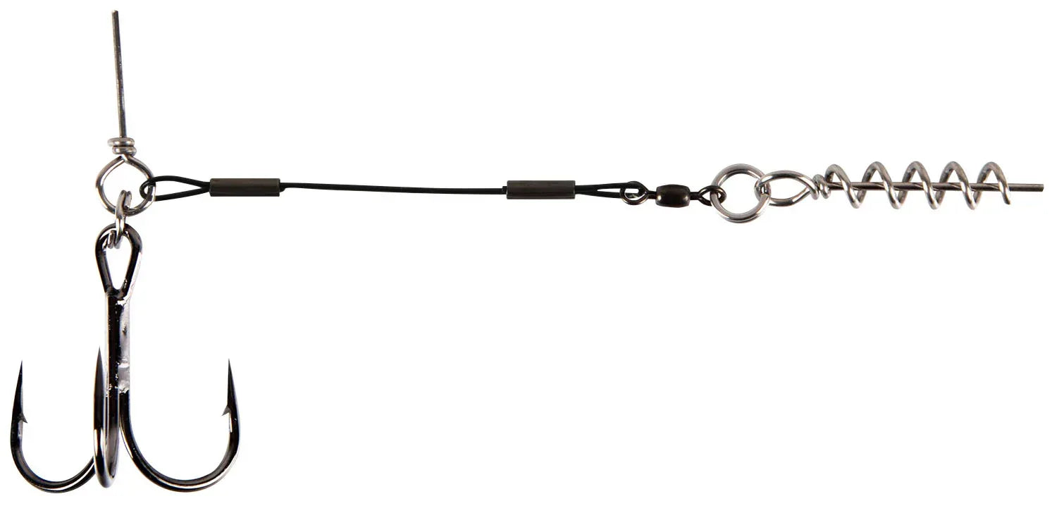 • Steel wire offering tensile strength of 100 lbs. / approx. 45 kg, #3/0 treble hooks. Designed to work well with the 26-cm Giant Pig Shad and Giant Pig Tail. Also compatible with other similar shads.