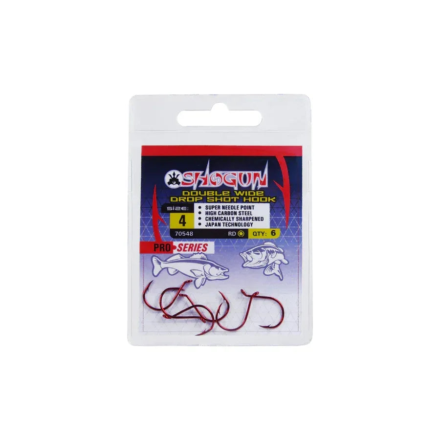 Shogun Double Wide drop shot hook. Japanese technology. Material: carbon steel. Color: red.